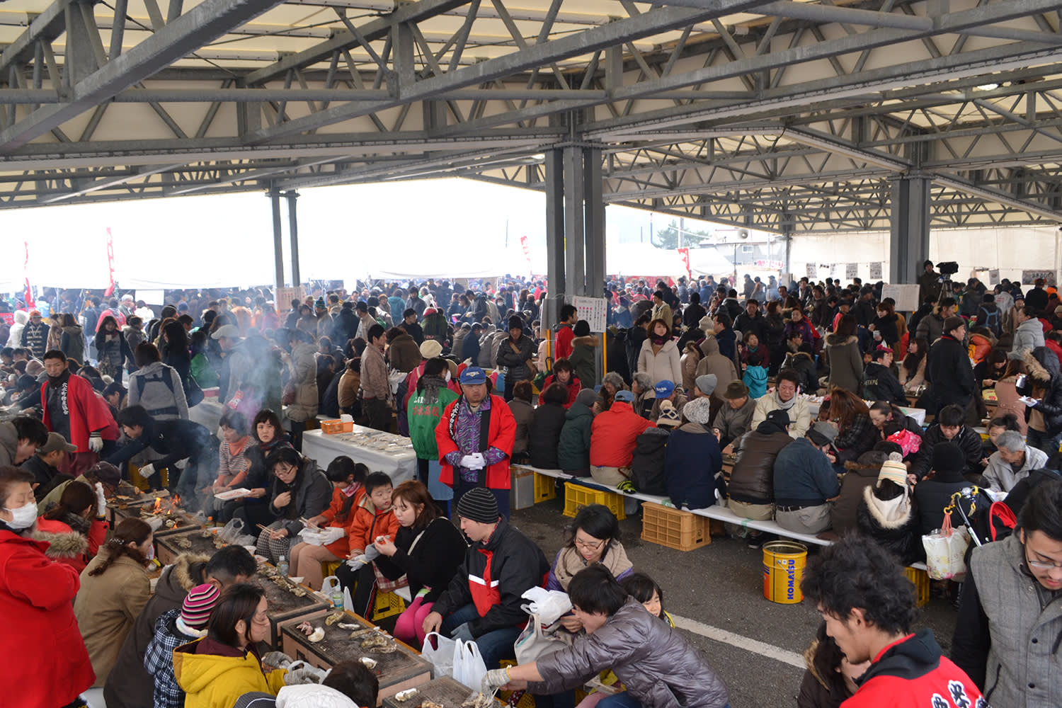 Every year, a 400-meter-long charcoal grill is set up for festival-goers to grill their own oysters. The communal grill and seating create a social, festive atmosphere. Various stalls sell a range of other local delicacies.