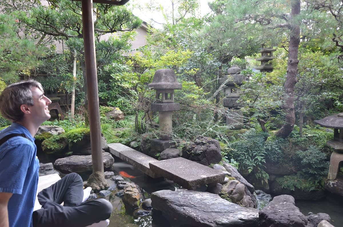 Towards the end of the district is Nomura Residence, a house restored from the Edo period. The house was filled with all sorts of displays including intricately crafted door handles, weapons, and currency of the era. I especially enjoyed seeing the door handles and the wood carvings above the doors with their beautiful designs, but by far the most impressive part of the house was the garden. The interior of the house already felt bigger on the inside than the outside, but the garden reinforced that feeling tenfold. The garden was overflowing with all sorts of plantlife, and even had a stream full of Koi fish. Heading into the second floor of the house only led to a more encompassing view of the garden than the porch lining its perimeter.