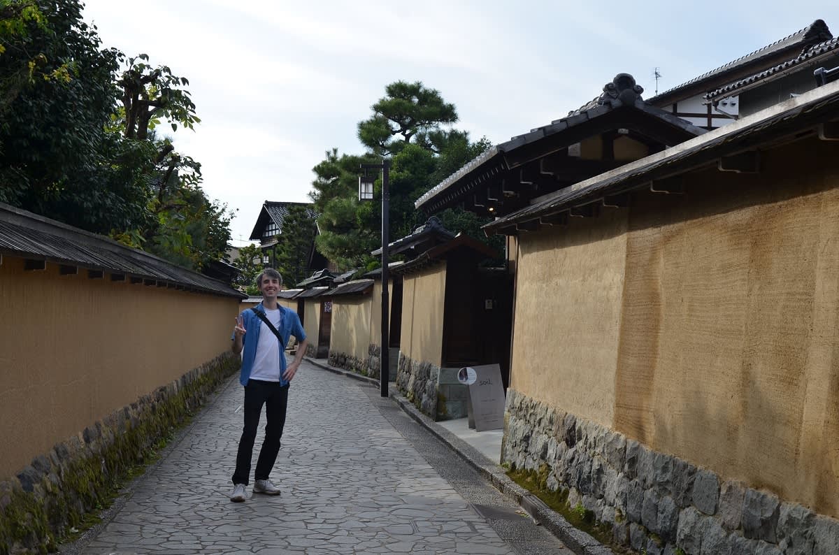 After finishing my green tea experience, I took a pleasant walk towards the Nagamachi Samurai District. This area of Kanazawa is famous for being the place where many Samurai lived centuries ago. Stepping into this district is like stepping back in time several hundred years, with stone roads lined with traditional looking walls as far as the eye can see. Glimpses of the houses peeking out from over the wall leaves a strong impression of how important the houses' former residents were.