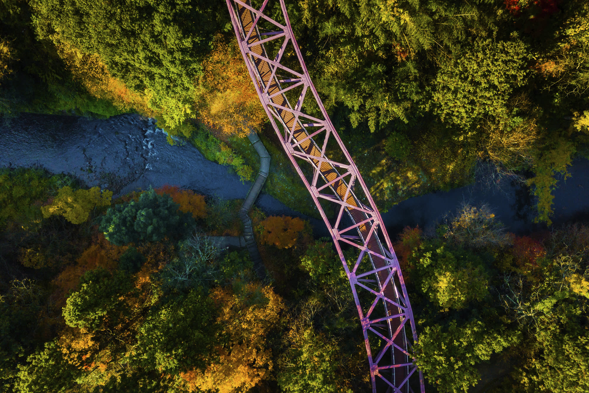 Tedori Canyon, located near the foot of Mt. Hakusan, is an 8-kilometer-long stretch of the Tedori River flanked by cliffs of up to 30 meters. Visitors can look down into the gorge from two bridges, or descend a steep staircase to view the 32-meter-high Watagataki Falls from below. Kakusenkei Gorge cuts through a forest in the hot spring village of Yamanaka Onsen. A 1.3-kilometer walking trail runs along the bottom of the gorge, passing waterfalls and deep water pools along the route.
