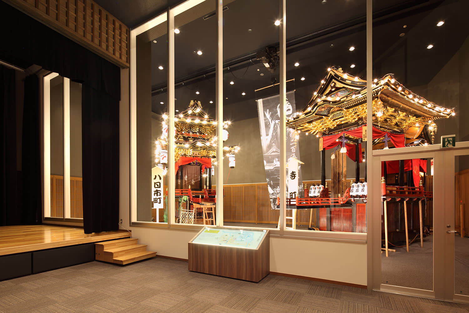 One of the most distinct elements of kabuki theater is the elaborate makeup of the performers. At Komatsu Hikiyama Exchange Center Miyossa, visitors can experience wearing kabuki-style makeup for 20–40 minutes. They can then dress up in costumes from the famous kabuki play “Kanjincho” and take photos in front of a large festival float known as hikiyama. The center offers other experiences such as theater dancing and playing the shamisen.