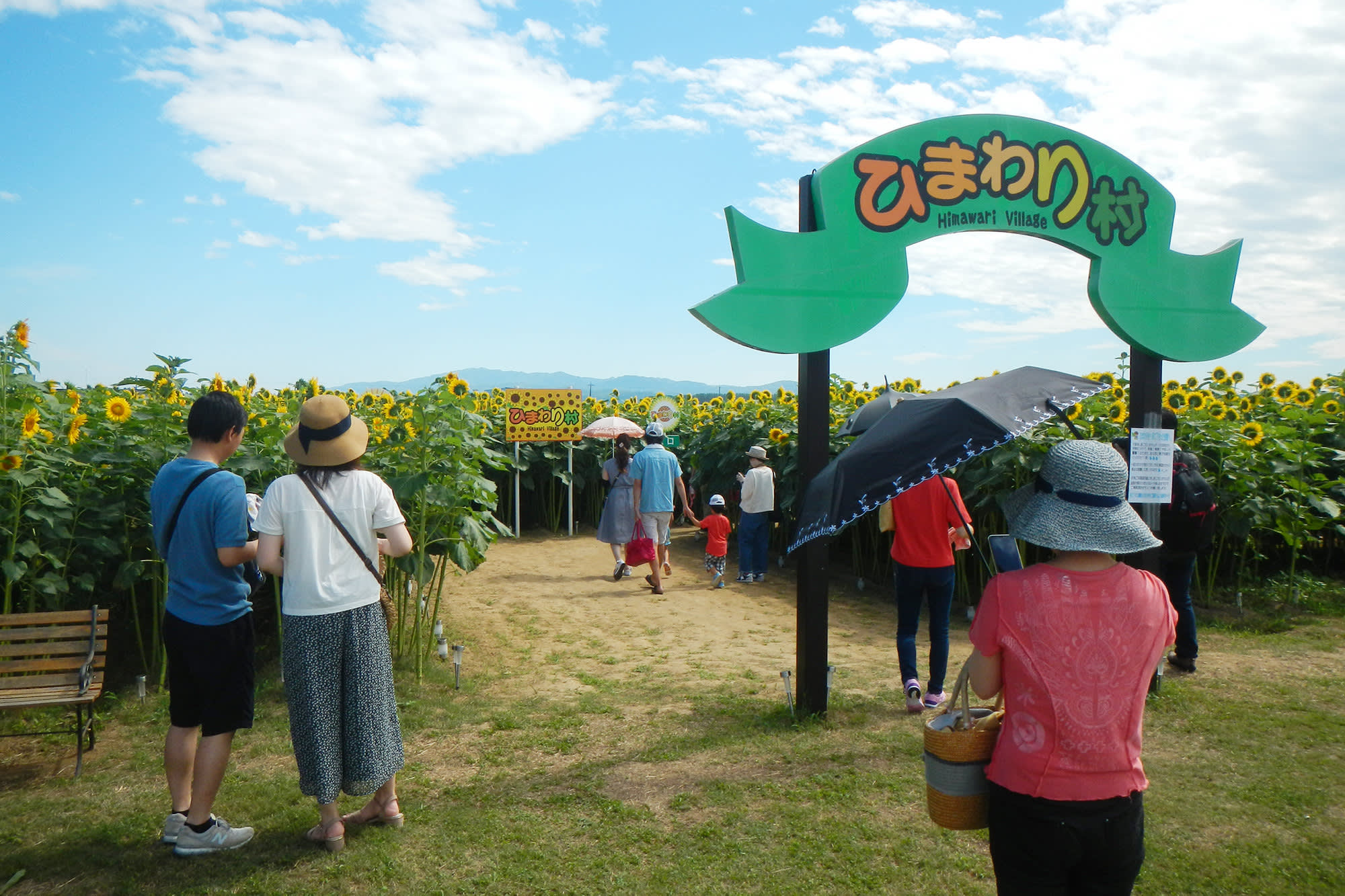 At the end of May each year, local children plant fields of sunflower seeds on a plot on reclaimed land in Kahoku Lagoon. The sunflowers reach full bloom from late July to early August, when the Sunflower Village opens to the public.