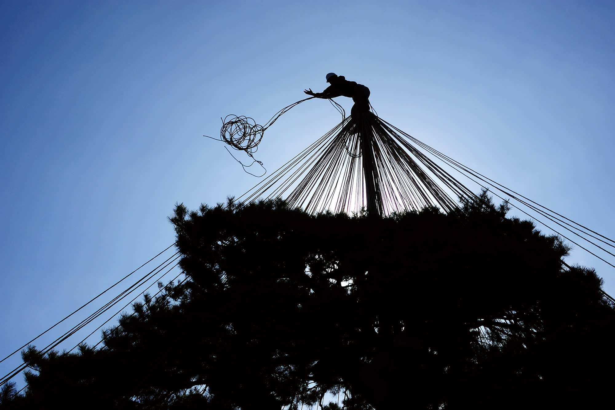 The garden’s appearance changes dramatically with the seasons. In spring, cherry blossoms form a pastel canopy over the walking path starting from the entrance facing Kanazawa Castle. In summer, carpets of green moss flourish in the woods below the pavilion on Yamazaki Hill. In autumn, the Japanese maples and zelkovas in the southeastern part of the garden burst into gold, crimson, and russet colors. In winter, gardeners tie up trees with bamboo and rope supports called yukizuri to help them weather the region’s heavy snowfall and maintain their painstakingly cultivated shape.