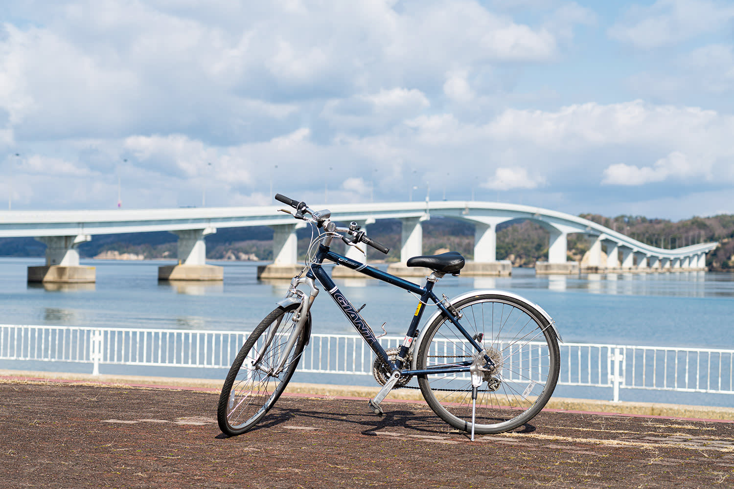 Rental bicycles are an enjoyable, active way to sightsee around Nanao Bay. The cycling course is about 40 kilometers in total. The route passes through idyllic natural scenery and landmarks such as the Notojima Bridge, the longest bridge in Ishikawa.