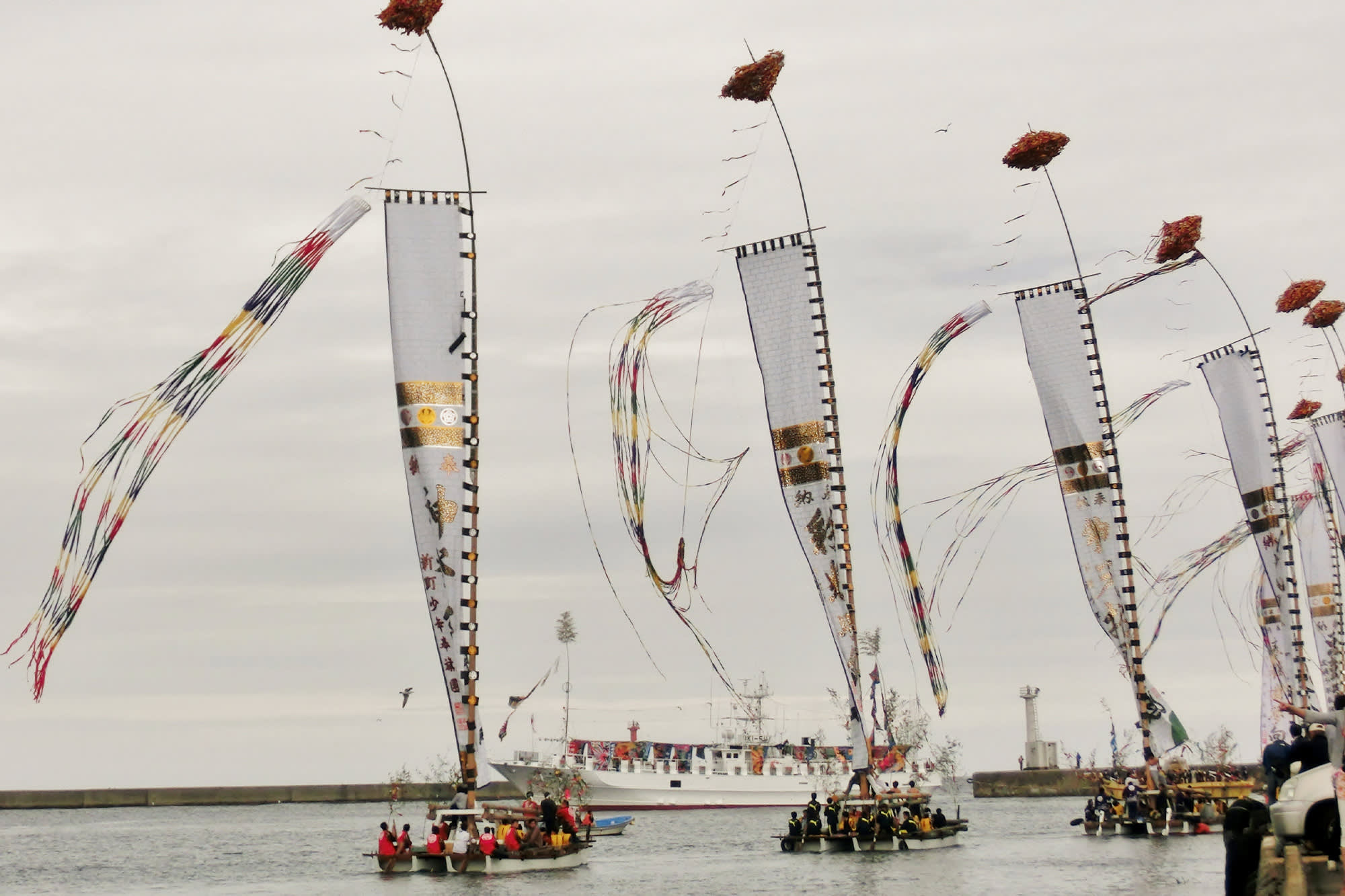 The Tomobata Festival is a spring festival dedicated to Mifune-jinja Shrine in the town of Noto. It is held at Ogi Port and is performed in hopes of safe sailing and generous hauls of fish.